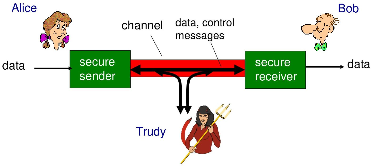 - Alice和Bob:在网络安全的情境中,通常用Alice和Bob来代表希望进行安全通信的双方,例如进行电子交易的Web浏览器和服务器、网上银行的客户端和服务器、DNS服务器之间以及交换路由表更新的路由器等。